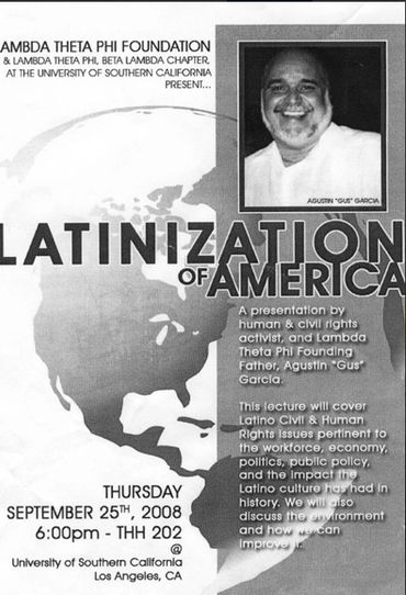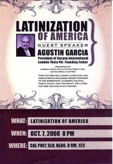 "In May 2014 Gus Garcia spoke for his “Latinization of America” tour. Not only did he inspire … me and other individuals, but he challenged his audience to think and build unity both with other Latinos and also within the larger community. I encourage your group/organization/movement to consider the Latinization of America series by Agustin “Gus” Garcia. Gus Garcia is a wealth of knowledge and is highly credible (visit Garcorp website www.garcorpinternational.com). His understanding of history, politics, and culture come together during his lecture as well as his daily life. Each lecture is unique and tailored to the interests of the hosting group as well as current social and political issues. Gus is passionate, personable, and communicable. The lecture is always relent and touches many diverse audiences. The planning and preparation for hosting the lecture is a collaborative effort. Gus Garcia works with the hosting group to provide the best lecture. During the planning process Gus and his team ask about the mission of the hosting group/organization/movement and their focus; audience demographics; and more all to gain a better understanding of his purpose and what he can provide. In addition, he and his team establish credibility early on and information that is useful during advertisement. Gus and his team are frequently in contact providing support, helpful information, asking and answering questions, and assisting along the way – you are never alone in the planning.